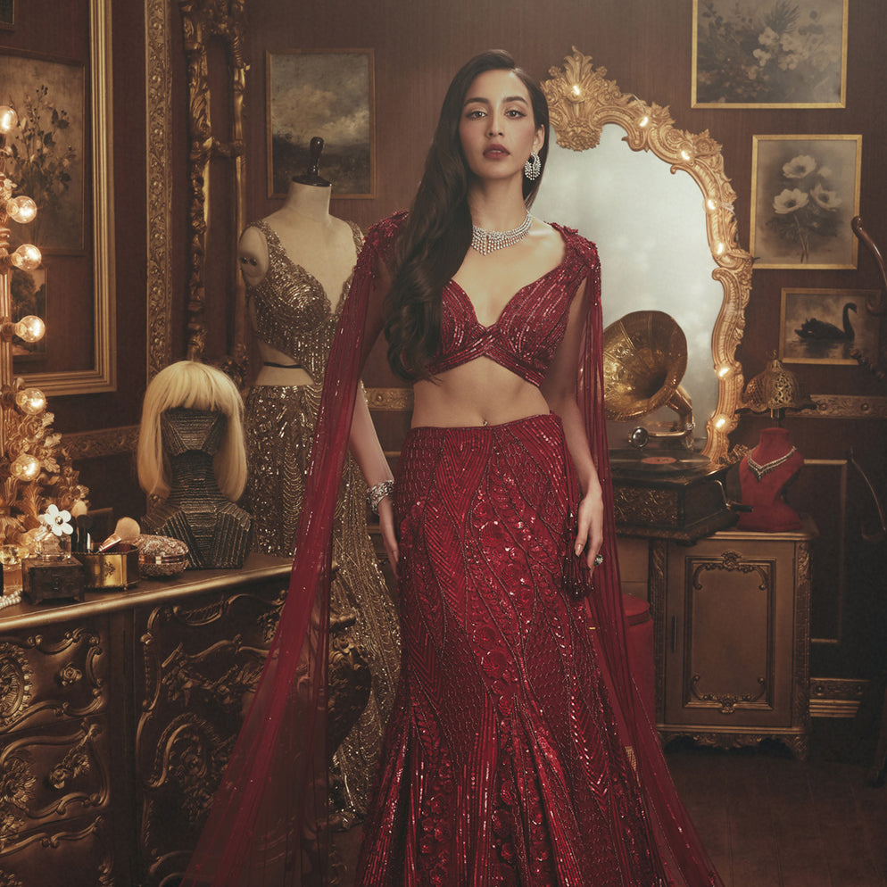 Inspired by velvet curtains, dimmed chandeliers, and the hush before a standing ovation, this collection captures the quiet drama of performance and the intimacy of after-hours glamour.
