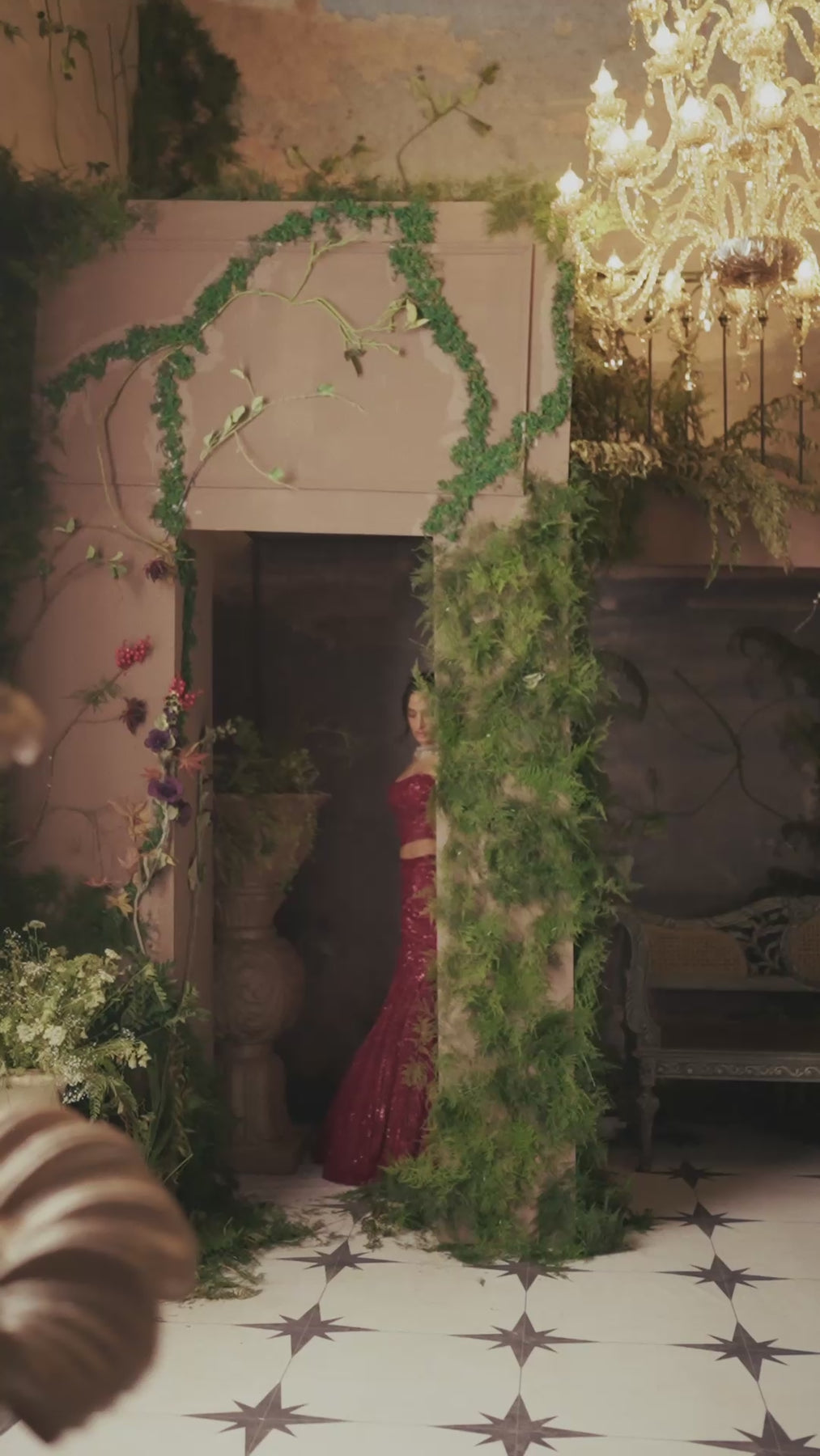 Featuring a red tonal mermaid lehenga set that is a perfect blend of modern sophistication and timeless charm. Crafted on net, the lehenga features a graceful mermaid cut that hugs the body and flares with subtle drama. It is paired with a structured corset blouse that adds a contemporary edge and is completed with long cape sleeves. Step into the luminous world of THE GILDED GALA, a collection that redefines regal charm with a contemporary lens. Evocative of old-world grandeur and modern sophistication, this line is crafted for those once-in-a-lifetime moments—where every gaze lingers, and every detail matters.